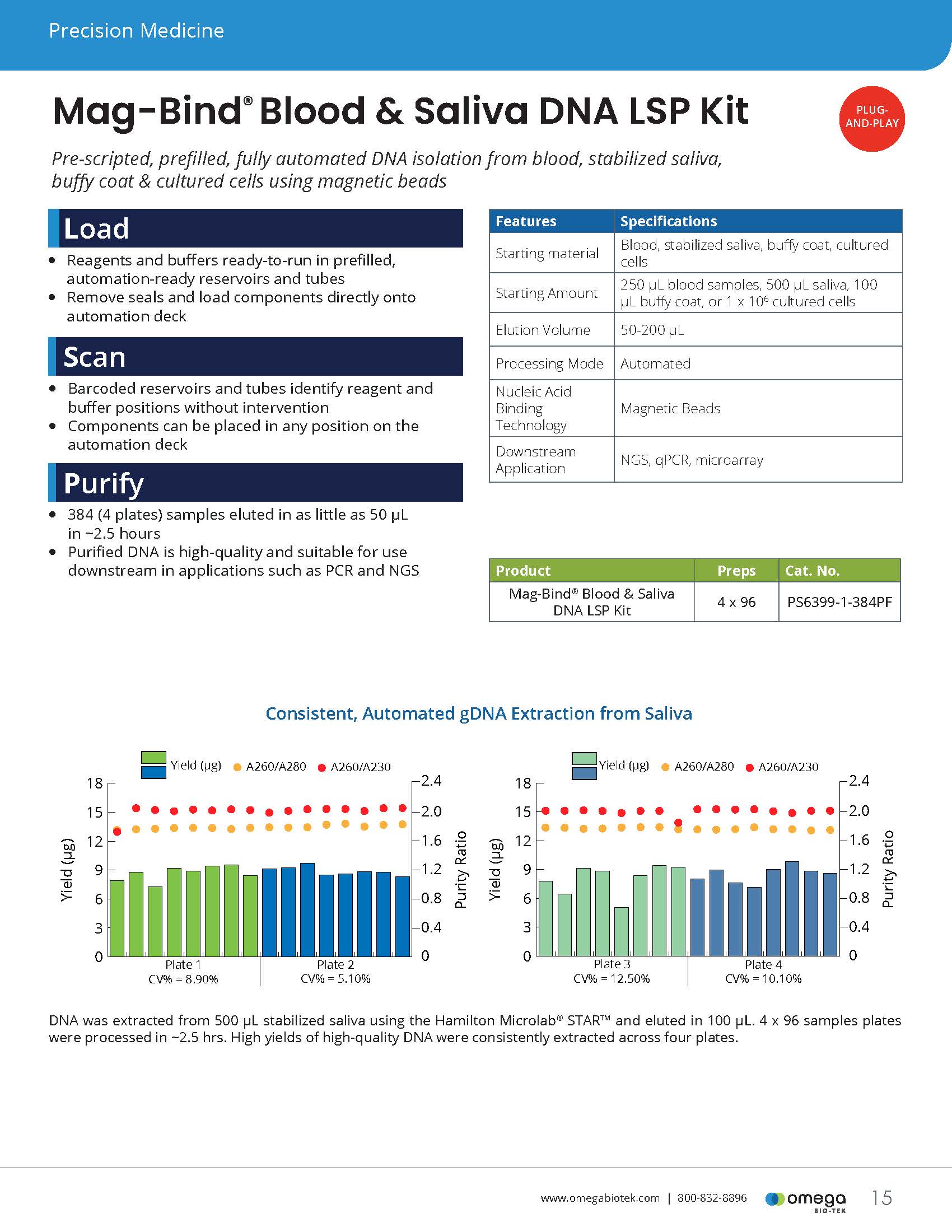 "Blood and saliva samples can be unpredictable, and researchers need purification tools that deliver consistent performance regardless of sample variability," said Julie Baggs, Scientific Director at Omega Bio-tek. "With the PS6399 kit, we provide our robust purification chemistry in a format optimized for high-throughput automated processing. Our goal is to give laboratories a dependable, scalable workflow that supports the growing demands of modern genomics and clinical research."